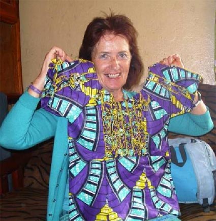 are two of the disabled young girls trained & sponsored by Congo Action in dressmaking. Pat and Martine much admired their finished work!